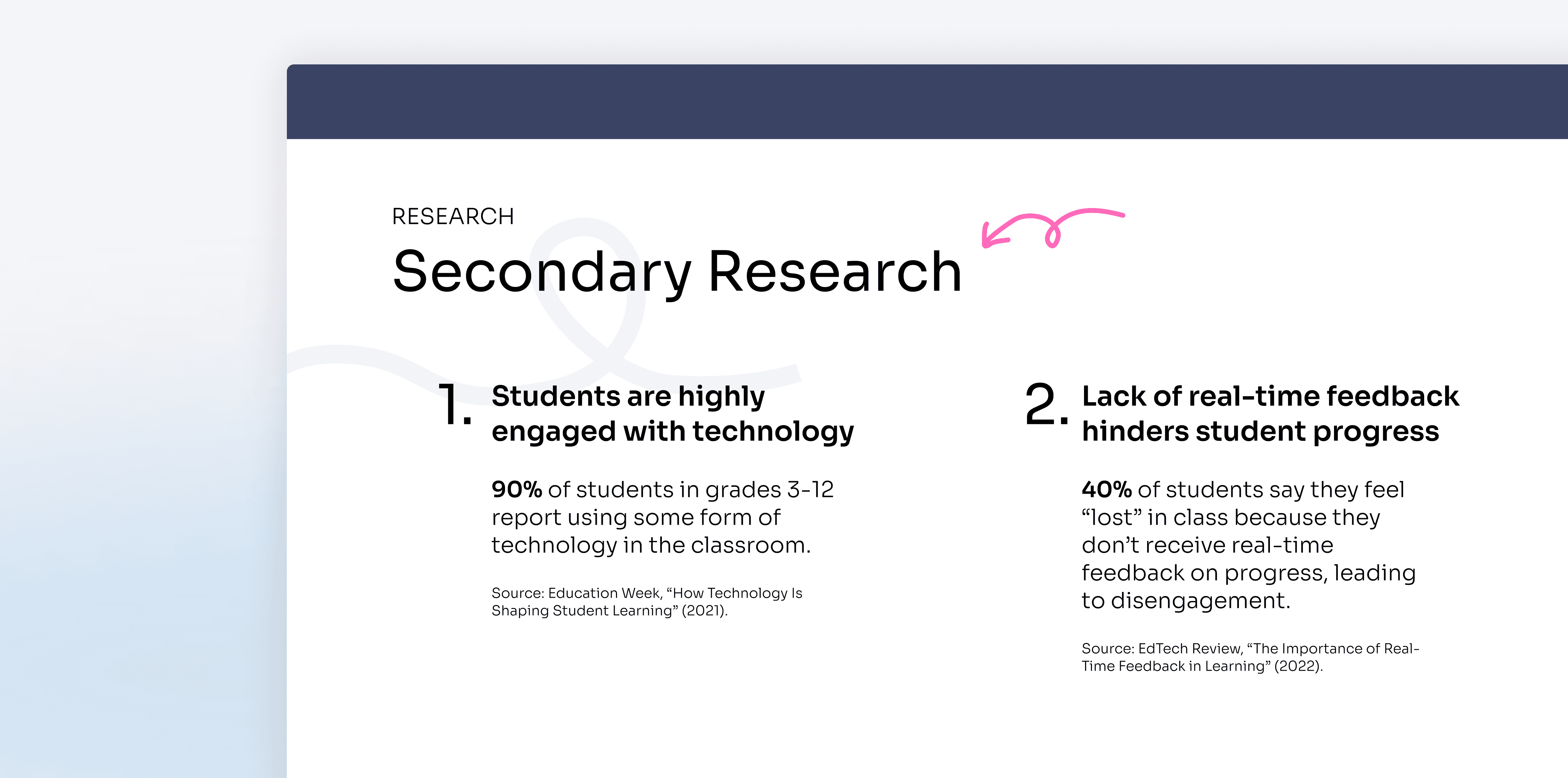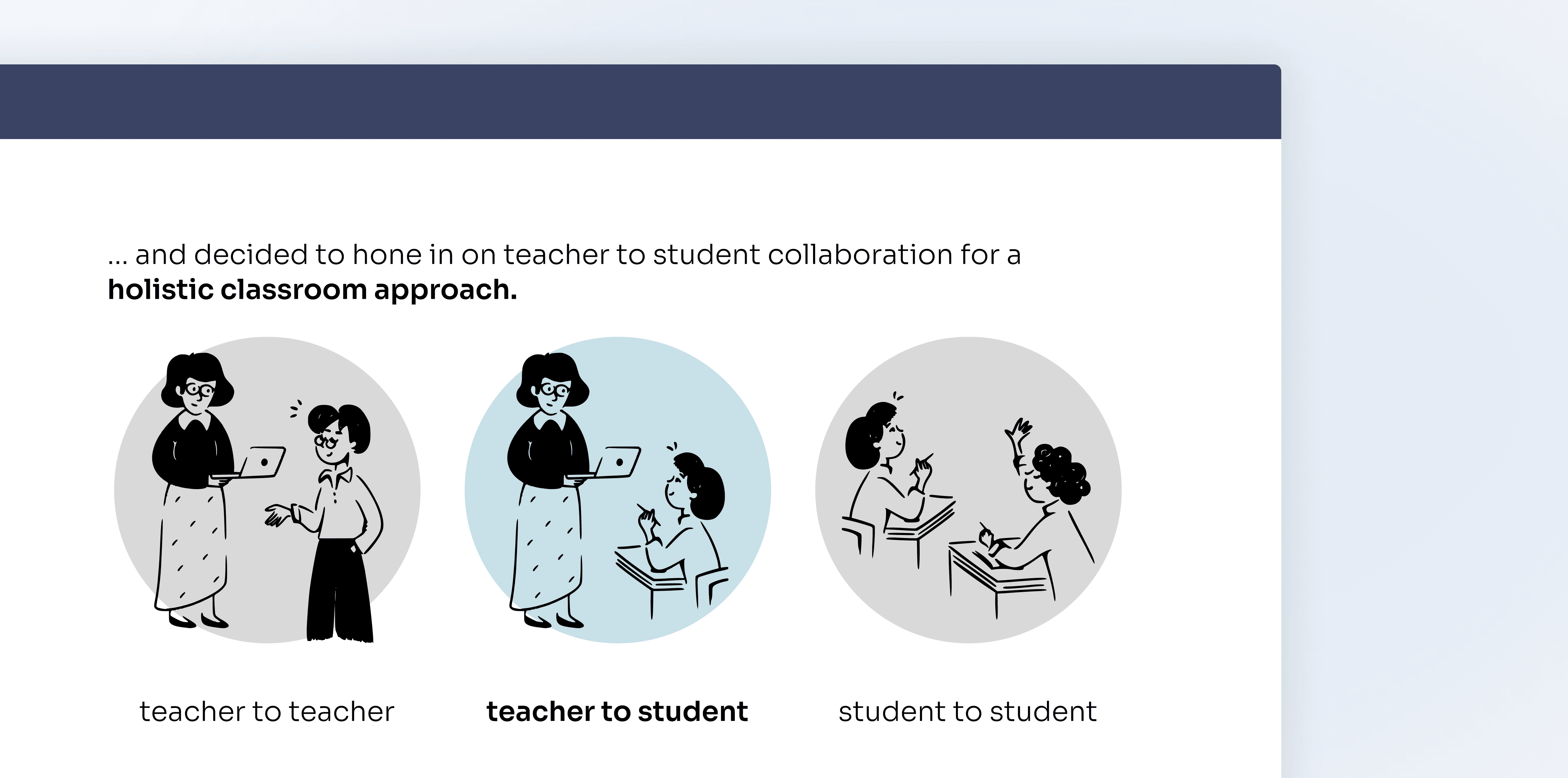 We chose to focus on teacher to student collaboration. While all avenues had merit, our research suggested that the most critical pain point was the friction between a teacher's instruction and a student’s immediate understanding.