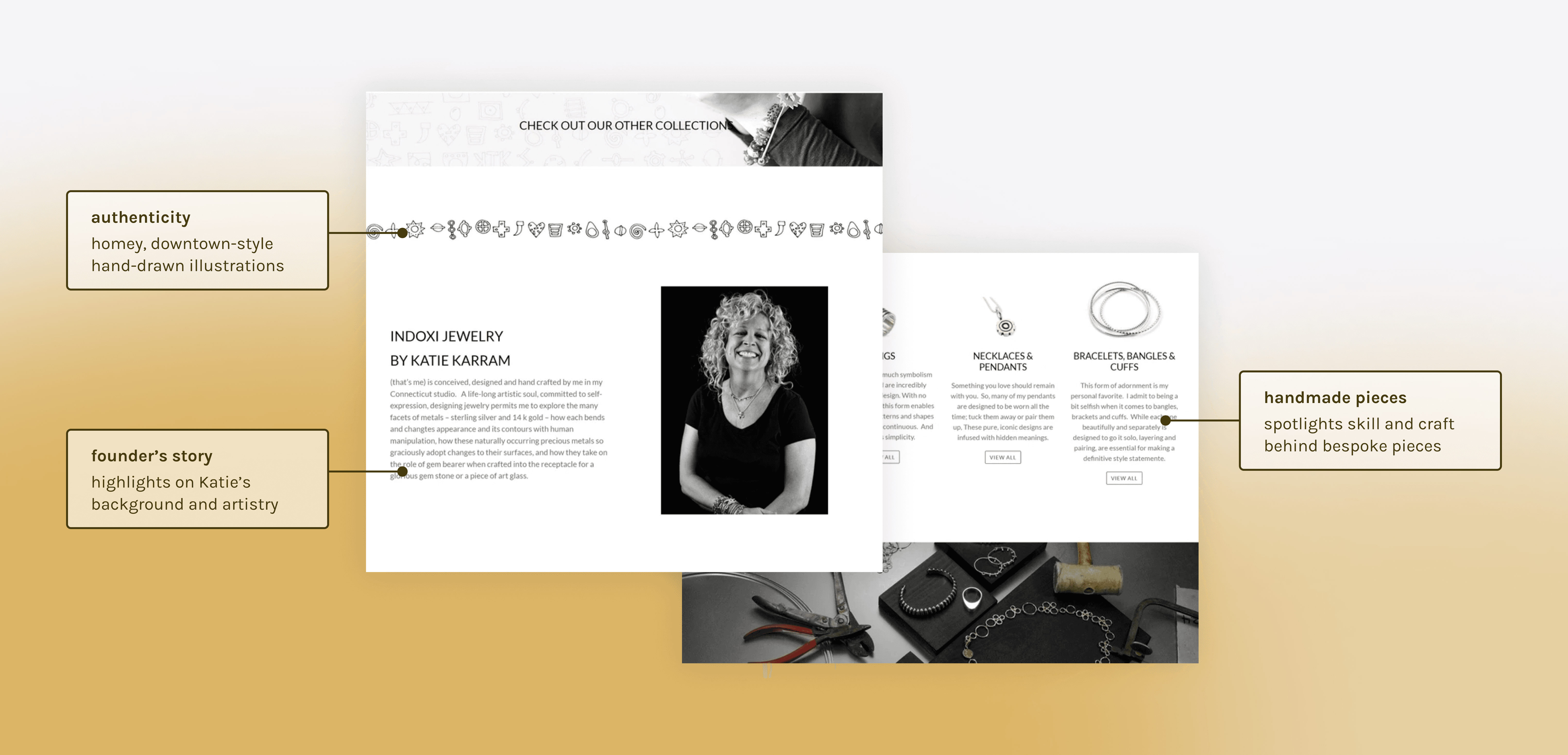 Our goal was to reimagine Indoxi Jewelry’s online experience to effectively represent Katie’s artistry through digital storytelling.
